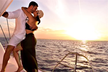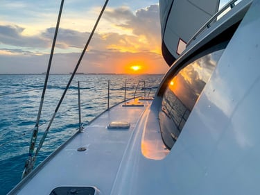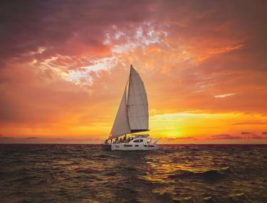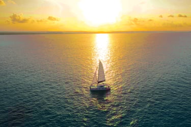 Ressentez la douce oscillation alors que le vent gonfle les voiles et que le soleil se couche derrière l'horizon emblématique des Caraïbes mexicaines.