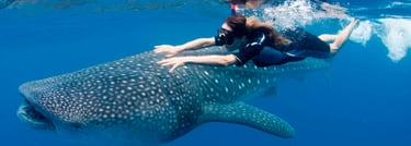 En arrivant à notre point de rencontre, vous nagerez aux côtés de Requins-Baleines mesurant jusqu'à 10 mètres, avec le soutien de nos guides et de notre personnel maritime, rendant votre expérience de nage inoubliable.