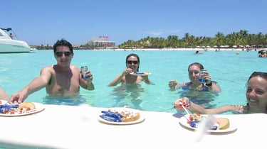 Après avoir nagé avec les Requins-Baleines, nous nous rendrons à Playa Norte (Isla Mujeres), où nous ancrerons notre bateau pour nous détendre et nous amuser dans les eaux peu profondes de cet endroit. Vous pourrez profiter d'un déjeuner léger et des boissons incluses dans cette expérience, avant de nous préparer à retourner à notre marina.