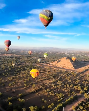 Pour une aventure inoubliable, survolez les pyramides de Teotihuacan en montgolfière, une expérience unique qui vous fera découvrir l'ancienne cité aztèque sous un nouvel angle. Vivez la magie de la fête des morts, une célébration fascinante où les rues s'animent de couleurs vives, d'autels traditionnels et de processions en hommage aux défunts. Vous pourrez également découvrir Xochimilco à bord de ses emblématiques barques fleuries, visiter la Basilique de Guadalupe ou explorer Coyoacán, berceau des grands artistes mexicains.
